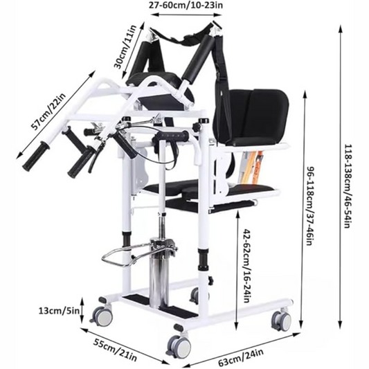 Hydraulic Patient Lift Transfer Chair – Height Adjustable Sit-to-Stand Wheelchair with Soft Back and Seat (300lb Capacity)